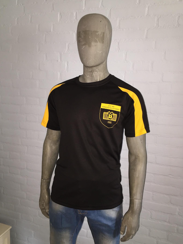 Wil je sporten in onze outfit? Trek dit mooie zwart met gele shirt aan om sowieso een winnaar te zijn 😉